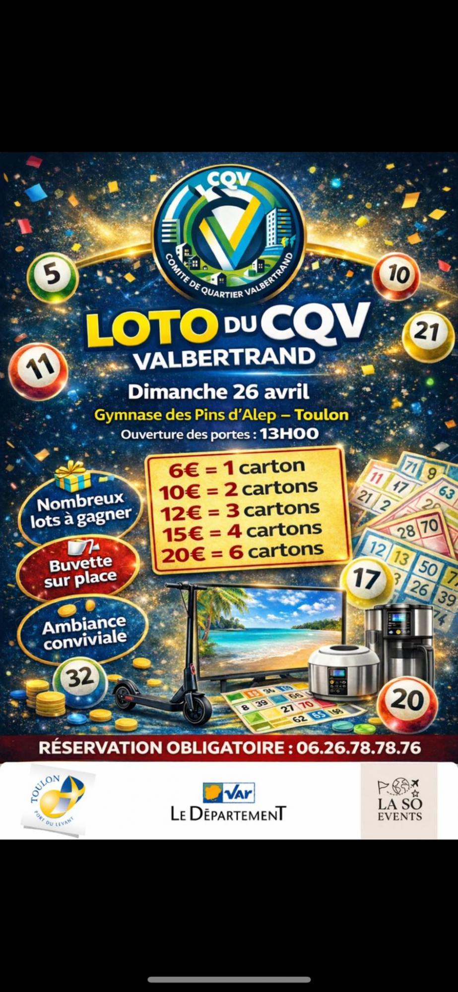 🕙 Ouverture des portes : 13h00 📍 Lieu : Gymnase des Pins d’Alep, Toulon 📞 Réservation OBLIGATOIRE : 06 26 78 78 76